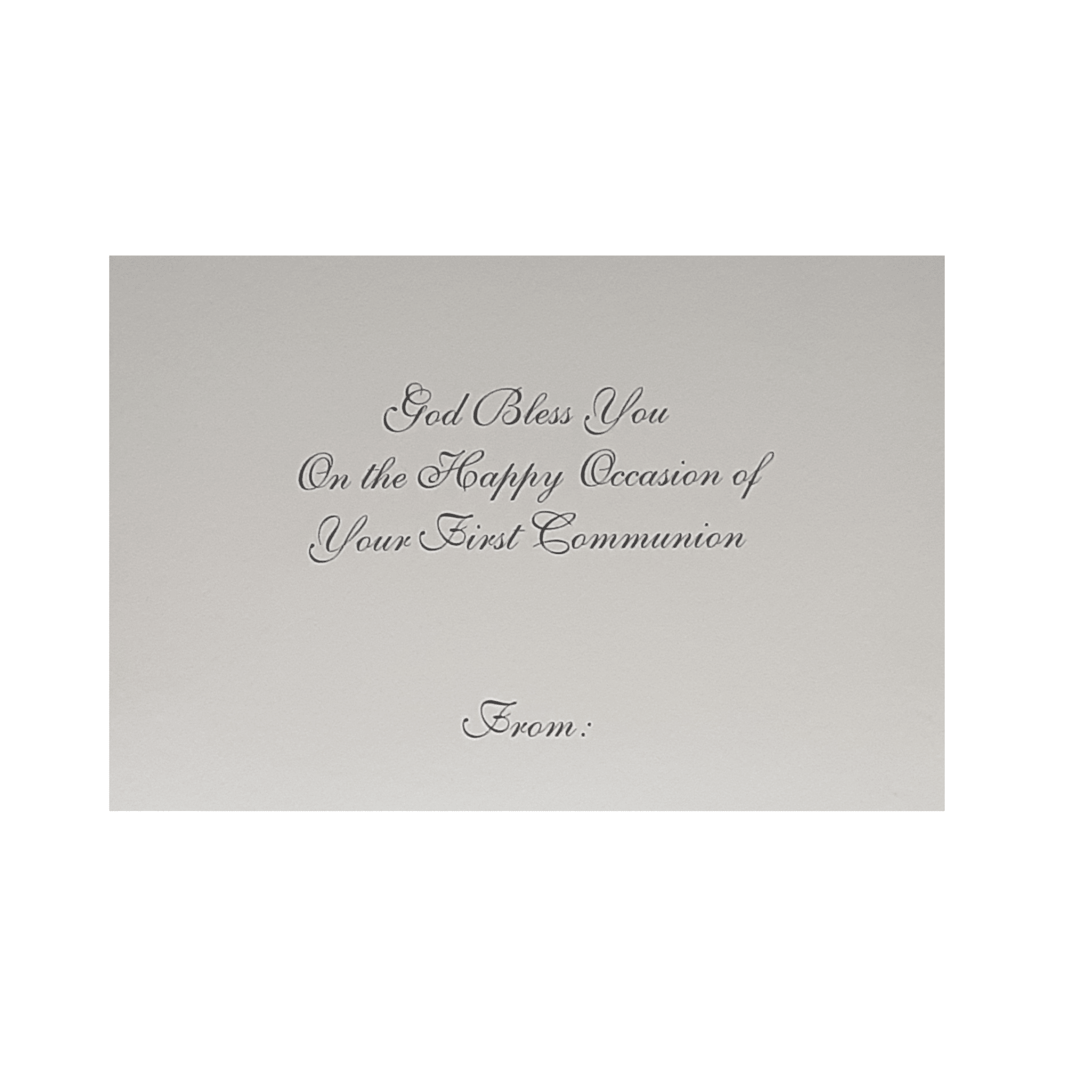 - Words on the inside of the card“God bless you on the Happy occasion of your First Communion.”
