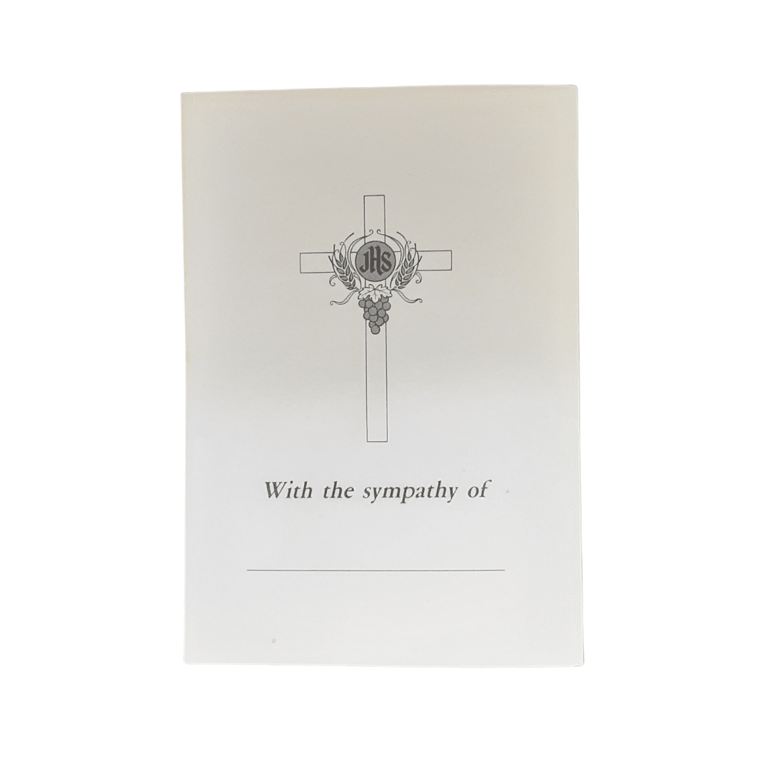 - front of the card has an image ofĀ the Mary holding Jesus andĀ the words “Sincere Sympathy” and “May God in the tenderness of His Mercy hold you close to His heart “
