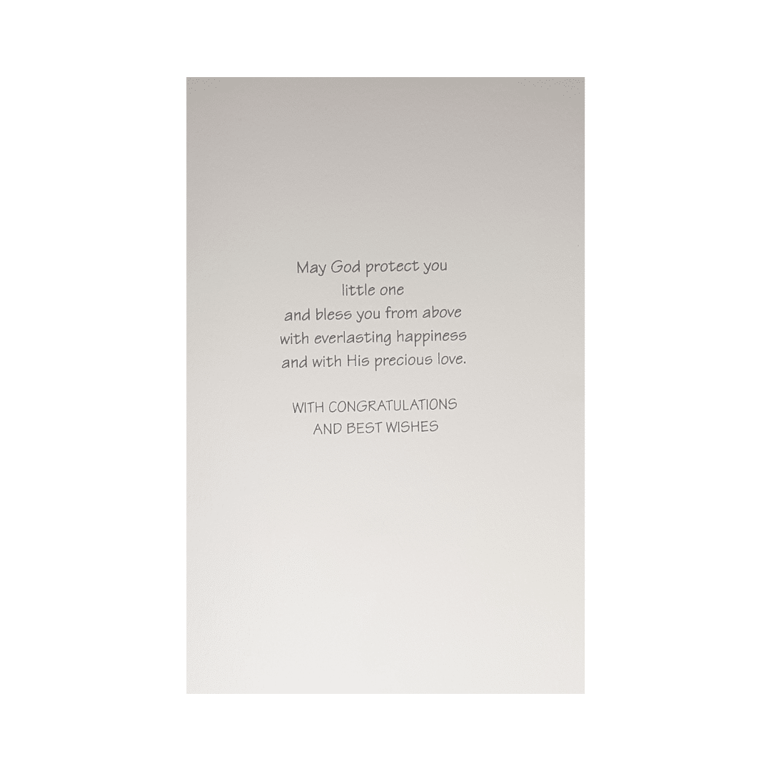 Measuring approximately 19.5 cm by 13.5 cm, the card provides ample space for a personal message. Inside, the card contains special words that enhance its significance, offering a meaningful way to share your blessings and joy with the family. The card comes with an envelope, ensuring it is ready to be sent with care and ease.
