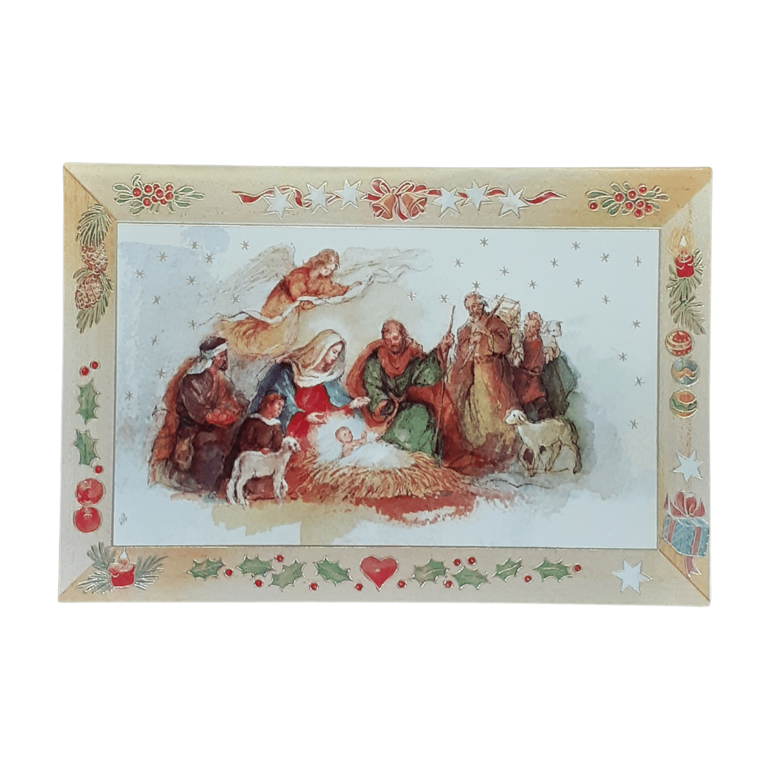 This Detailed Christmas Card is a beautifully crafted greeting card made of high-quality cardboard. Measuring approximately 17 cm by 11.5 cm, it features a detailed image on the front that captures the festive spirit and intricacies of the holiday season. The inside contains nice wording, perfect for conveying your heartfelt holiday wishes.