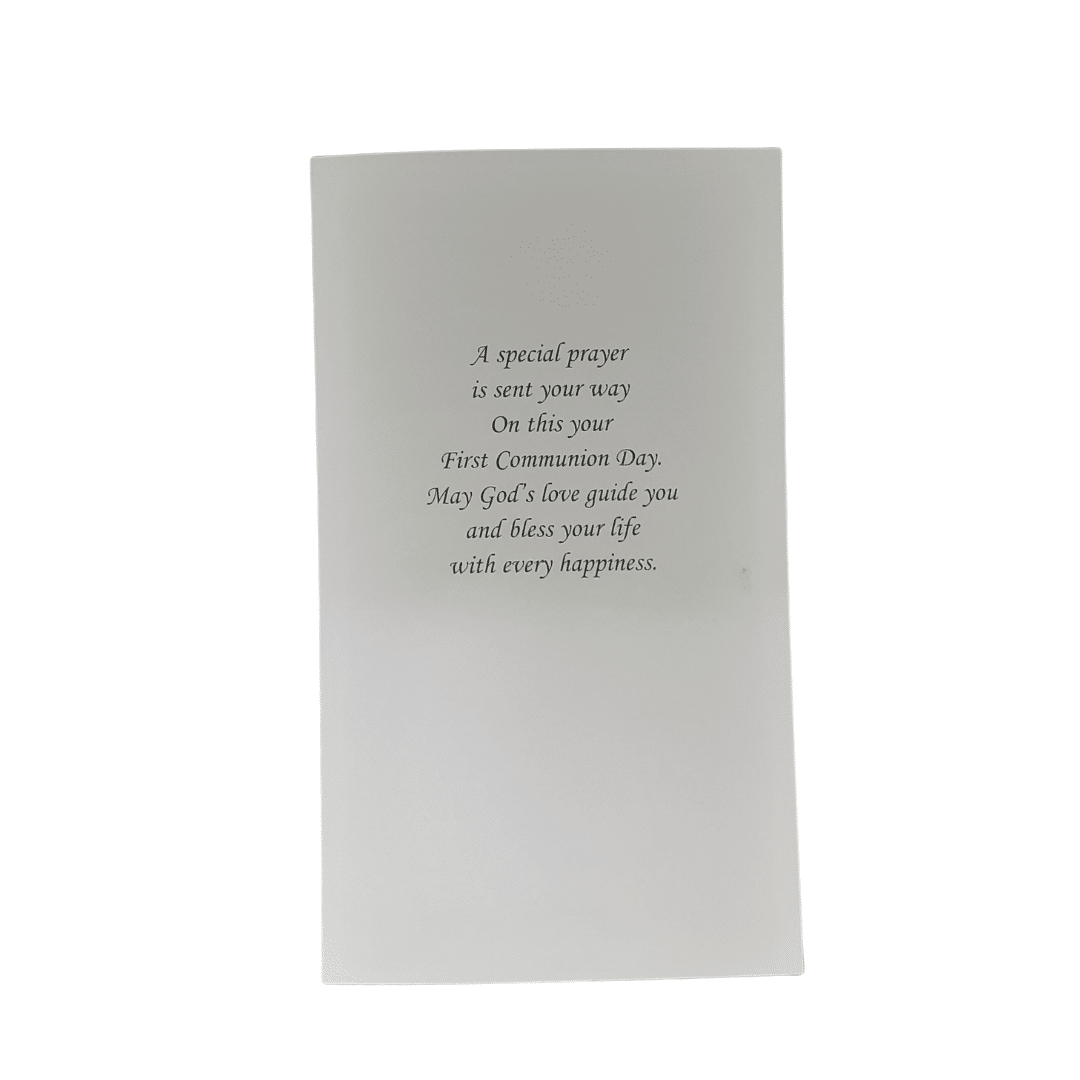 • Suitable Wording Inside: The inside of the card contains heartfelt and meaningful wording, perfectly capturing the significance of the First Holy Communion. The message is designed to convey your best wishes and blessings for the communicant on this special day.