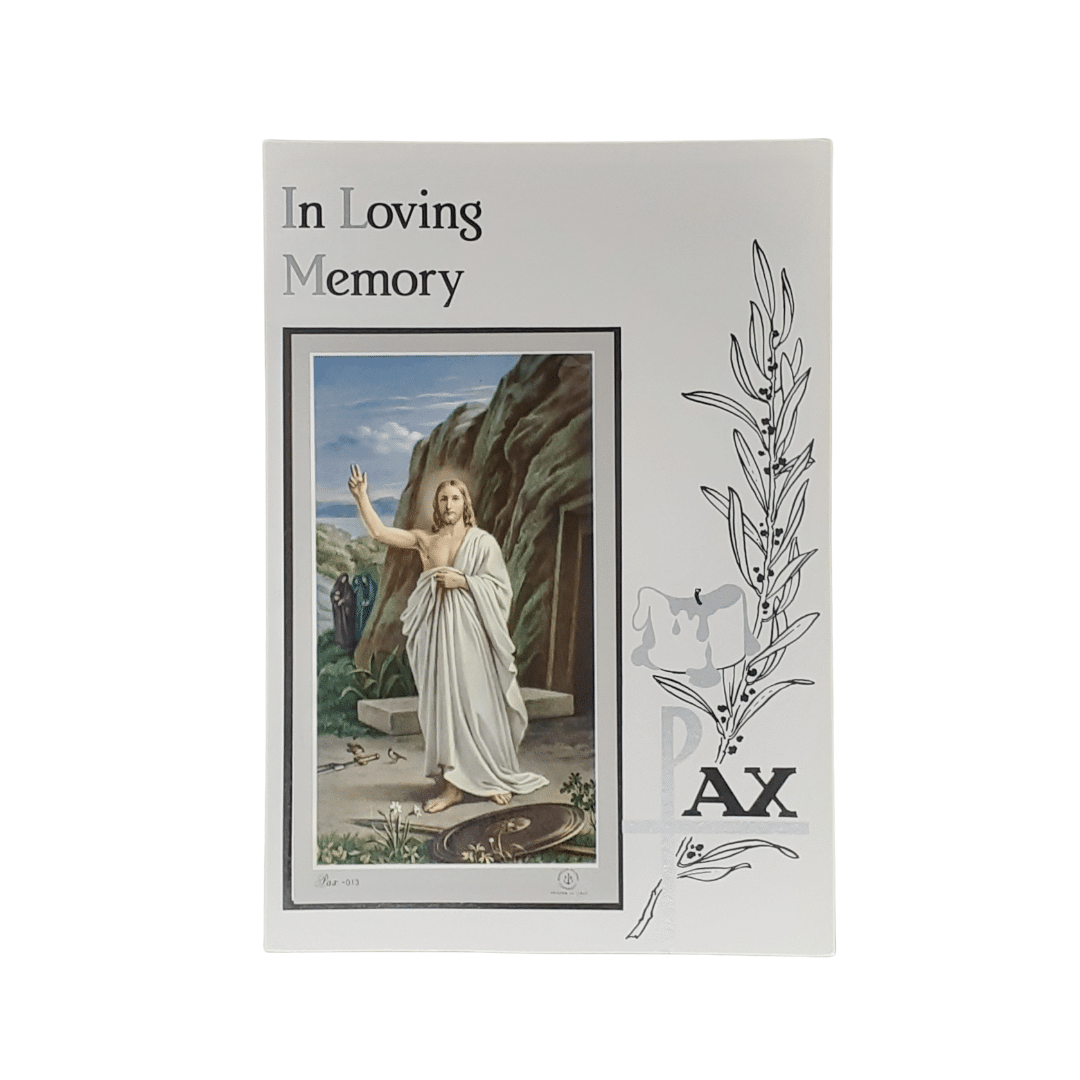 This beautiful Mass Intention Card, In Loving Memory Card Resurrected Christ, offers a heartfelt way to honor the memory of a loved one. The front of the card features a powerful image of the Resurrected Christ, symbolizing hope, renewal, and the promise of eternal life. The delicate artwork and soft colors evoke a sense of peace and reverence, making it a comforting choice for those seeking solace and spiritual connection.