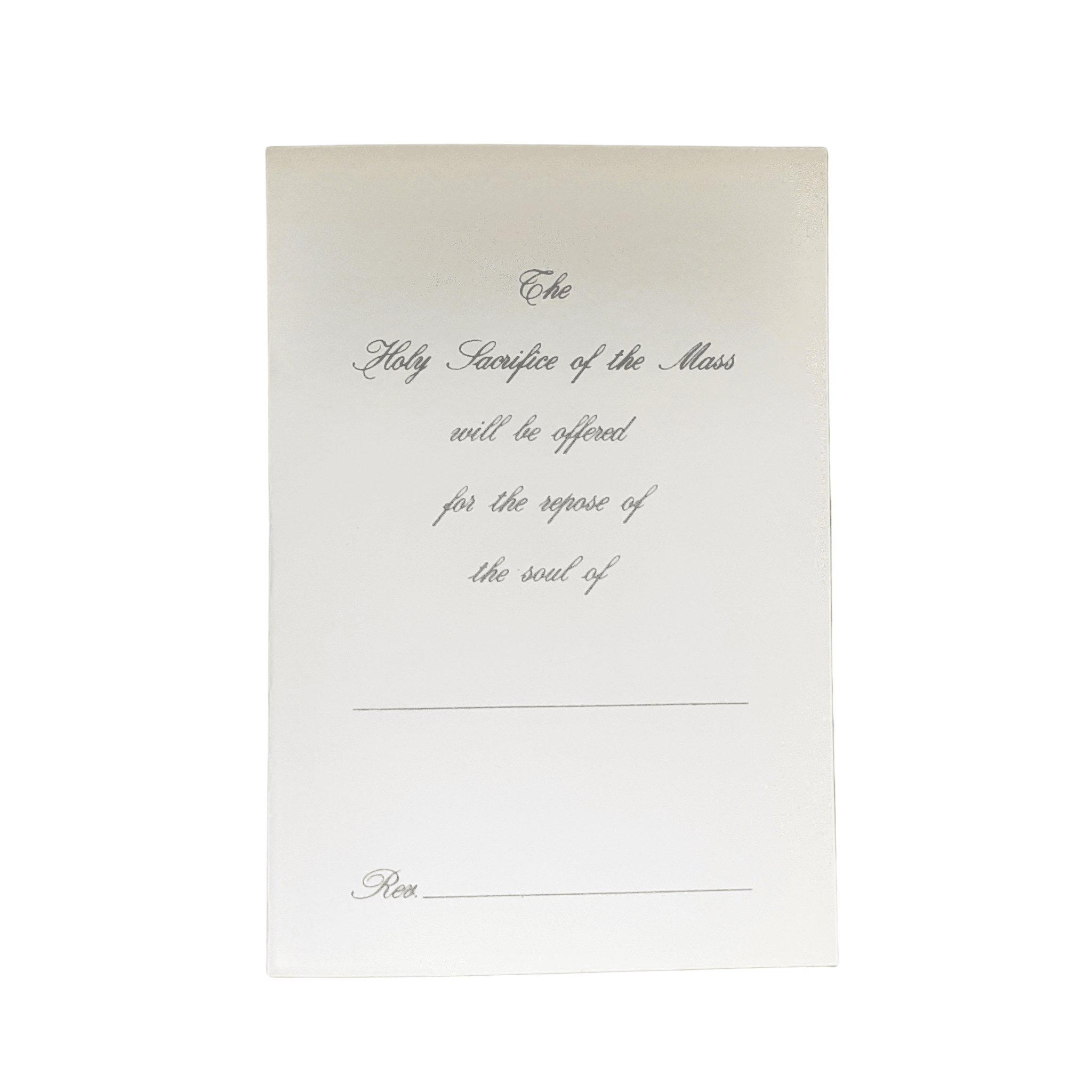 • inside place to write the name of the deceased for whom the most Holy Sacrifice of the Mass is offered