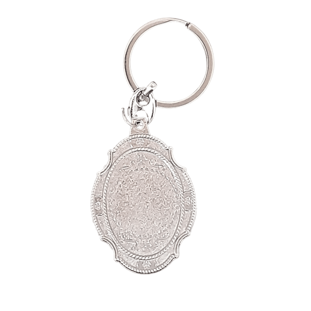 The Mary and Jesus Keyring is a beautifully crafted accessory made from high-quality, silver-colored metal, ensuring durability and a polished finish. Its dainty and refined appearance makes it a lovely addition to any set of keys or as a charming pendant for a bag. The front of the keyring features a beautifully detailed image of Mary and Jesus, symbolizing love, compassion, and faith.