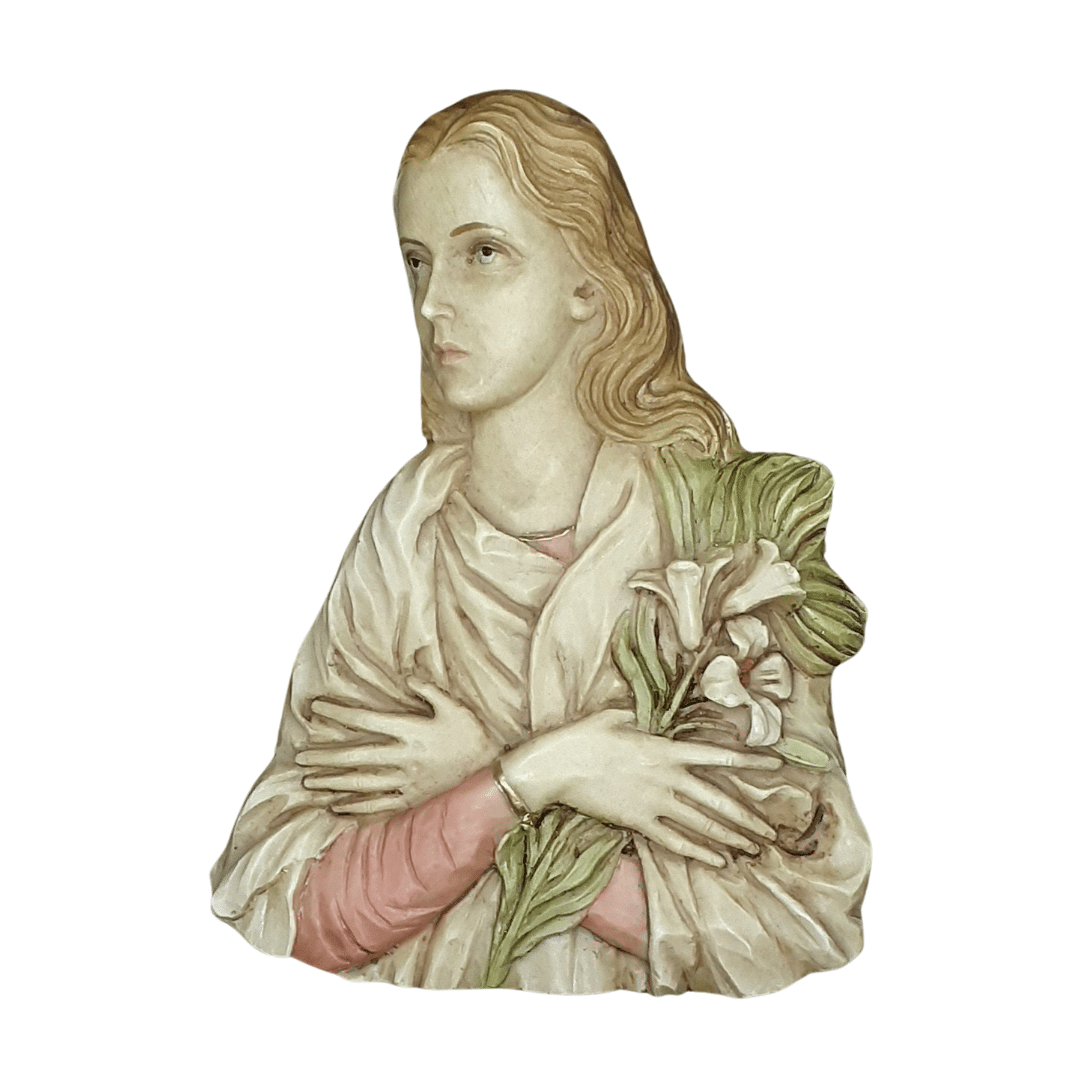 This beautiful St Maria Goretti Plaque is a heartfelt tribute to the beloved saint. Made in Italy, this collectible resin plaque is meticulously crafted to capture the serene and inspiring image of St Maria Goretti. Designed to hang on the wall, it is a perfect addition to any faith-filled home, offering a constant reminder of the saint’s purity and dedication.