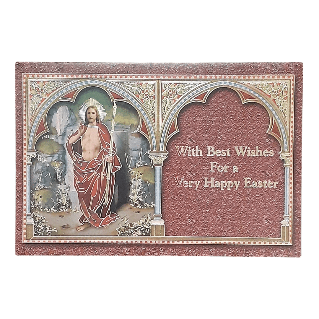 The Very Best Easter Wishes Card is a beautifully designed piece, perfect for sending heartfelt Easter wishes to your loved ones. This lovely card features a serene image of the resurrected Jesus on the front, capturing the essence of the Easter celebration. The elegant design, coupled with the sacred imagery, makes this card a thoughtful way to express your spiritual wishes during this special season.
